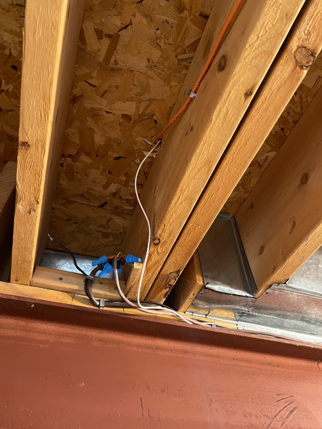 From inside the house, the fibre cable came-out above the electrical panel, behind the insulation. The cable was long enough to reach the i-beam in the middle of my basement, where an optical junction box was installed. This junction box contains the only optical splice he had to make.